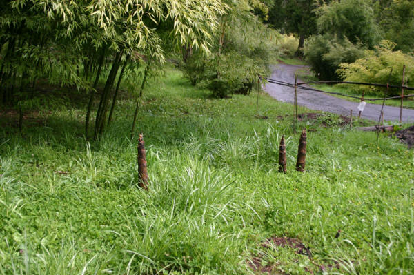 After nearly a month of rainy weather, the shoots have only grown about 12 inches, but the are impressive diameter. This is about the last chance to harvest edible shoots before they get too large and fibrous.