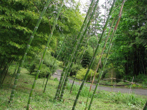Because the canes are connected by rhizome, it is functioning as a single plant. Now it has the energy required to produce larger and more numerous new shoots each spring that grow from the ground up to 35 feet in two months. This is especially impressive when watching timber bamboo new shoots grow over a foot per day, from ground level up to 50 feet in the spring season.
