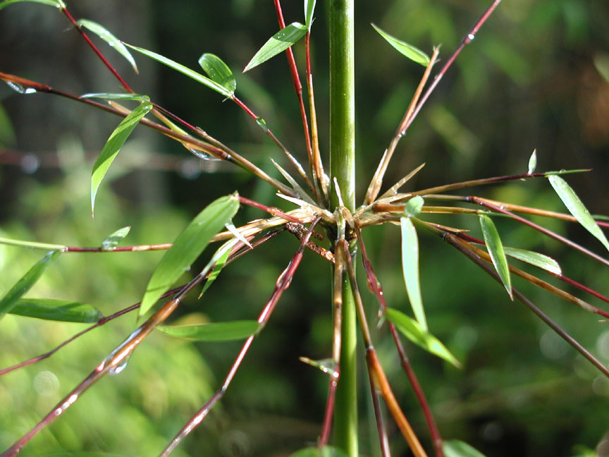 Watering newly planted bamboos every day, or for longer than a few minutes can cause excess leaf drop. Well-established bamboos are rather tolerant of flooding, but newly planted bamboos can suffer from too much as well as too little water. Make sure the area drains well and doesn't tend to collect pools of ground water for long periods of time (more than 24 hours). Installing a simple drip system with a timing unit is a cost effective and efficient way to assure the watering needs are met, while minimizing the chance of overwatering. Where possible, use overhead or sprinkler systems to irrigate a wider area and encourage more rhizome growth, if you want the bamboo to spread into a large grove.