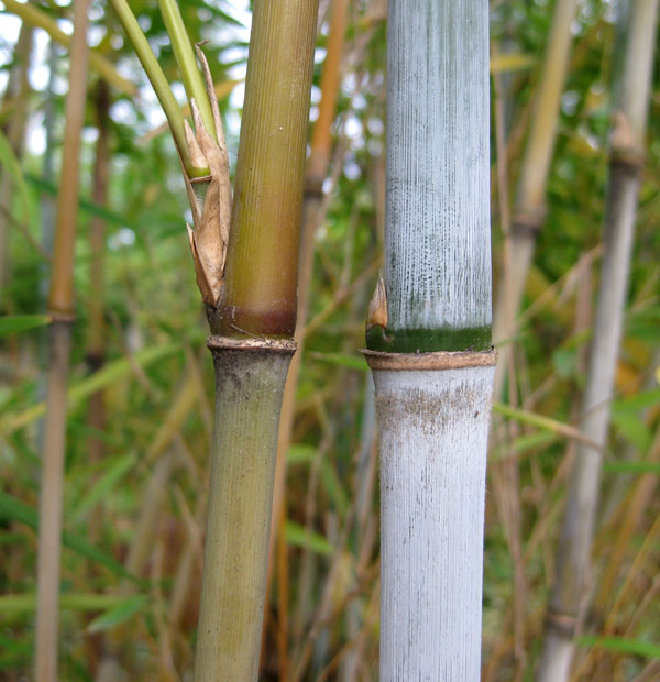 It is thriving in the UK to a height of just over 25 feet, making it among the largest of its genus. The new shoots, vibrant blue behind pink culm sheaths, and the lush green leaves are its most distinguished features. It requires a sheltered and partially shady area to look its best. Unfortunately it is recognized as the least cold-hardy Borinda, hardy only to 25°F. A mild West coast climate, such as the San Francisco Bay area, would be ideal if the plant is given adequate wind protection. It has a clumping, non-invasive root structure.