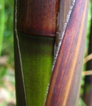 This bamboo has very straight upright culms with masses of drooping foliage and shiny dark green leaves. The new shoots have distinct and colorful culm sheaths. Native to the Yangtze valley of China where it is referred to by the locals as "Beautiful Bamboo". It is a fine bamboo for a tall dense screen. Thought to be synonymous with Phyllostachys mannii.